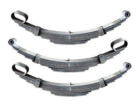 板彈簧為截面是長方形的長圓弧形彈簧鋼。在最常見的配置中,弧的中心提供了軸的位置,而在任一端形成的環附接到車輛底盤。對于非常重的車輛,可以由多個層疊在一起的多個葉片制成板彈簧,通常具有逐漸變短的葉片。板彈簧可用于定位和一定程度的阻尼以及彈簧功能。雖然夾層摩擦提供了阻尼作用,但其控制不佳,并導致懸架運動中的靜摩擦力。為此,一些制造商已經開始使用單片彈簧。